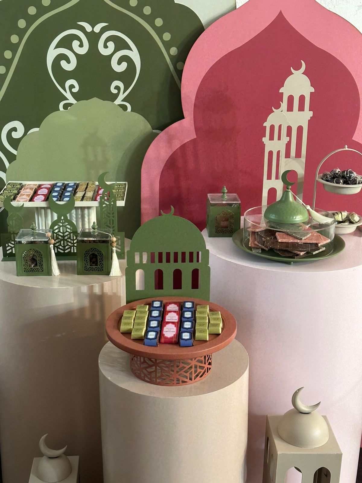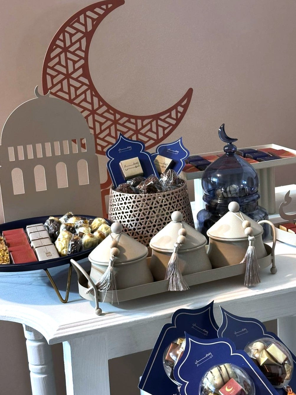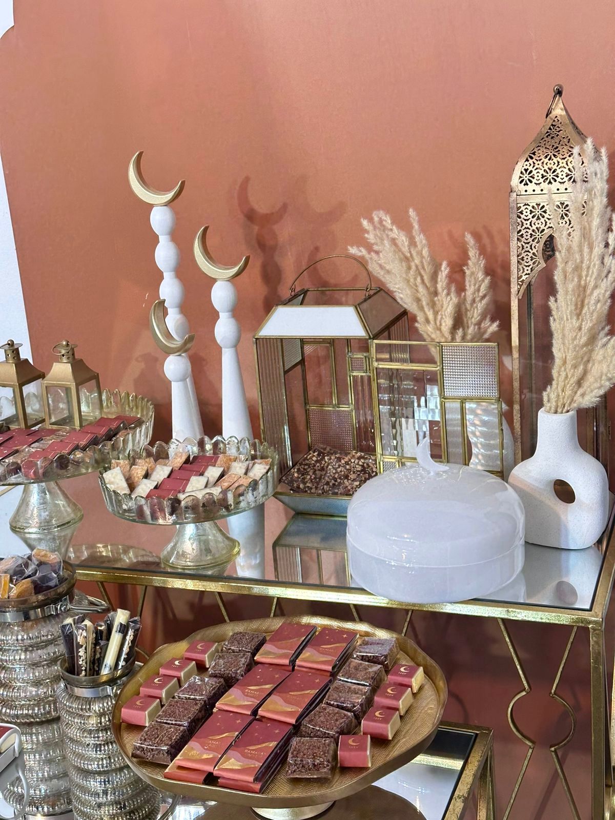 This year, Elsa Chocolatier introduces a new Ramadan Home Display Collection, designed for homes that want to elevate their décor and hosting throughout the holy month. Our rentable displays can be styled for the full month or for special Suhoor and Iftar gatherings, each beautifully filled with unique oriental chocolates and chocolate-dipped dates.