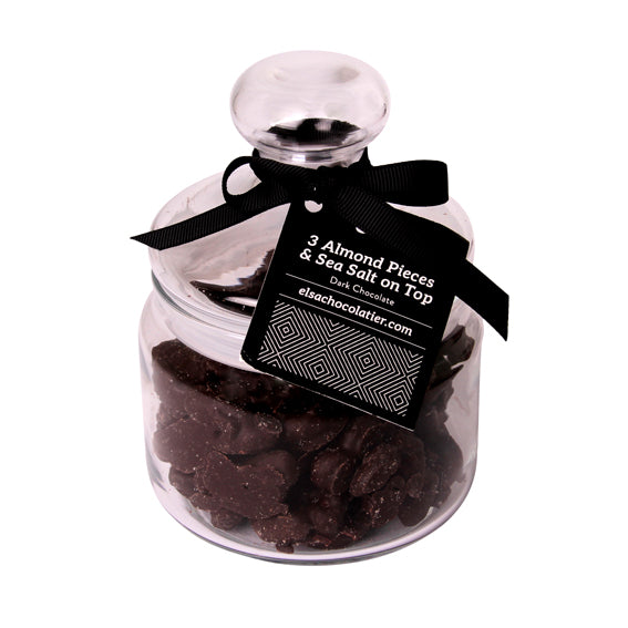 Fine taste of rich dark chocolate enjoyed with the strong flavor of sea salt on top of these almond pieces.