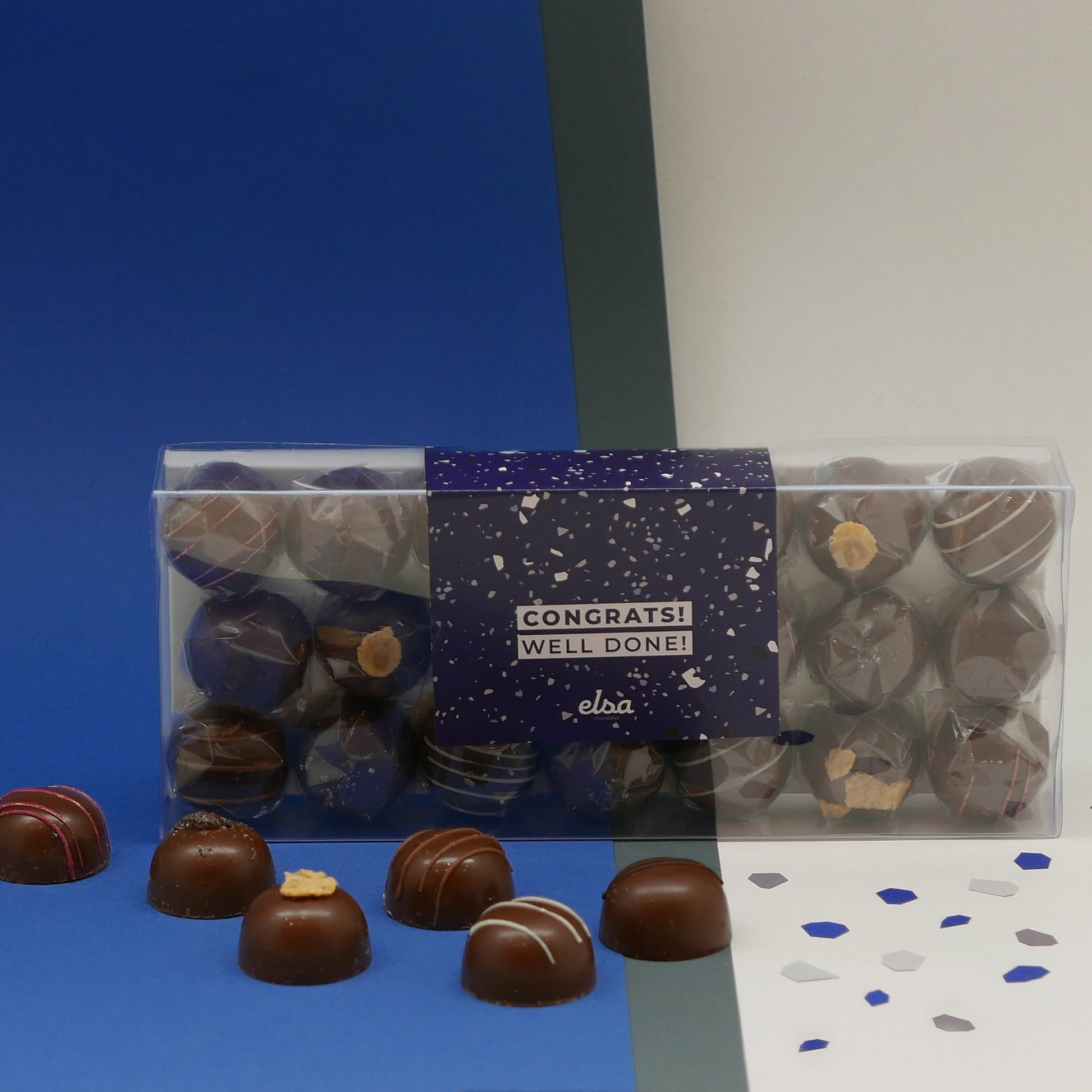 Congratulate your colleagues and friends with delicious Belgian chocolate box filled with the most innovative and mouth-watering flavors!