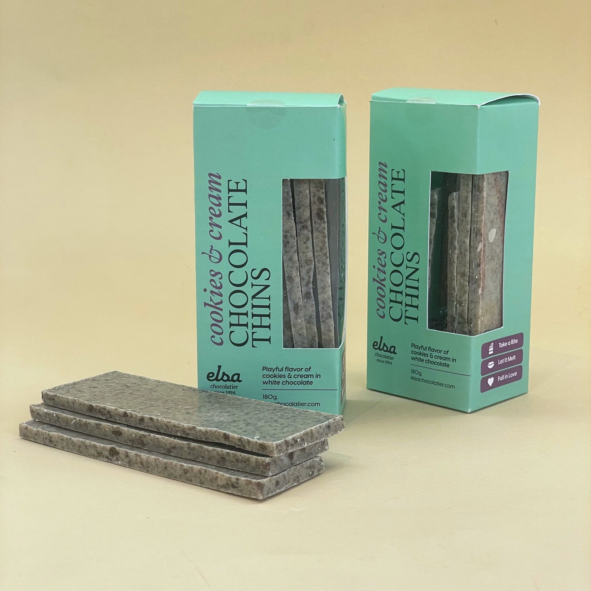 Dive into deliciousness with our Cookies & Cream Chocolate Thins Box! Experience the whimsical blend of creamy white chocolate and playful cookie flavors, all wrapped up in a colorful, fun box. Indulge in pure delight with every bite!