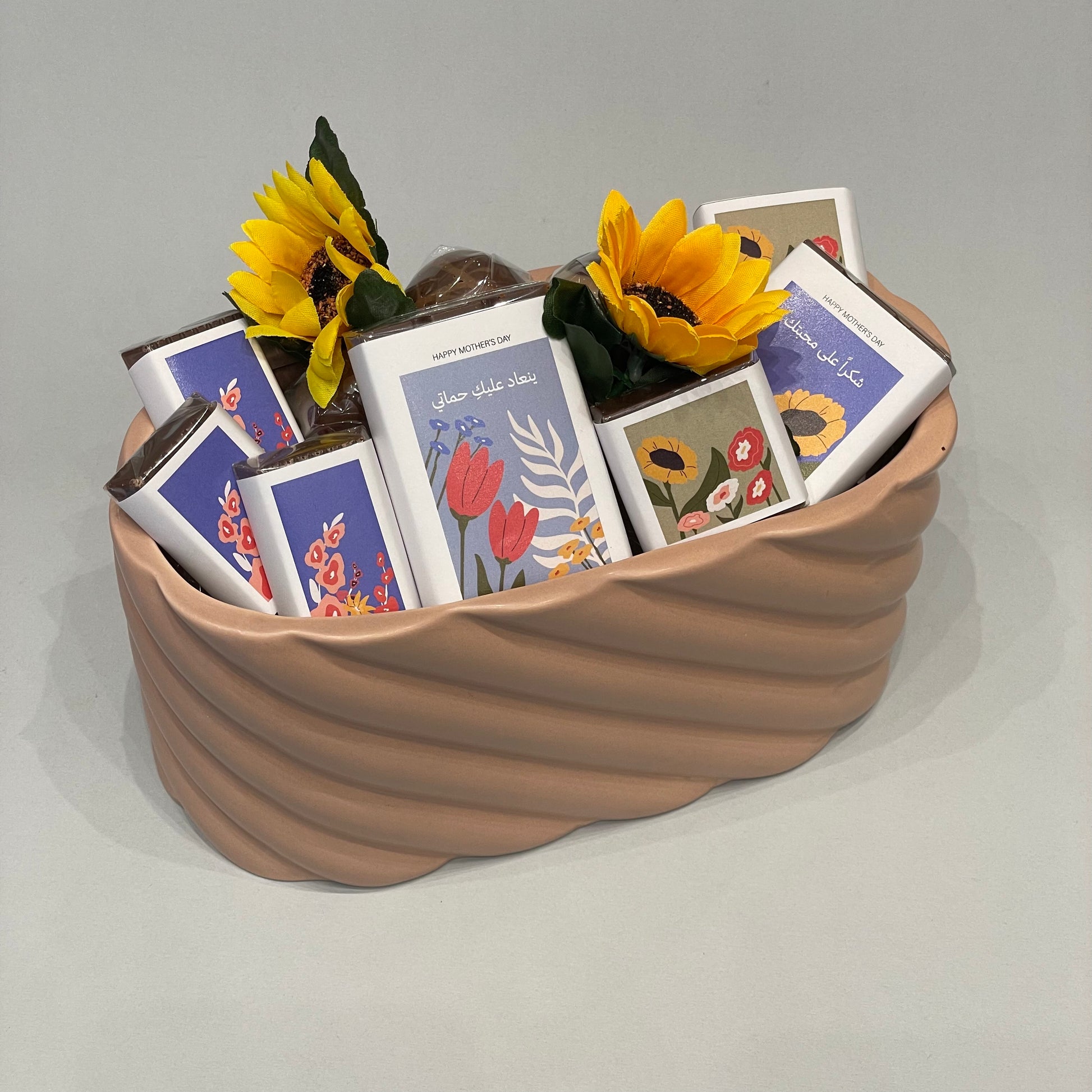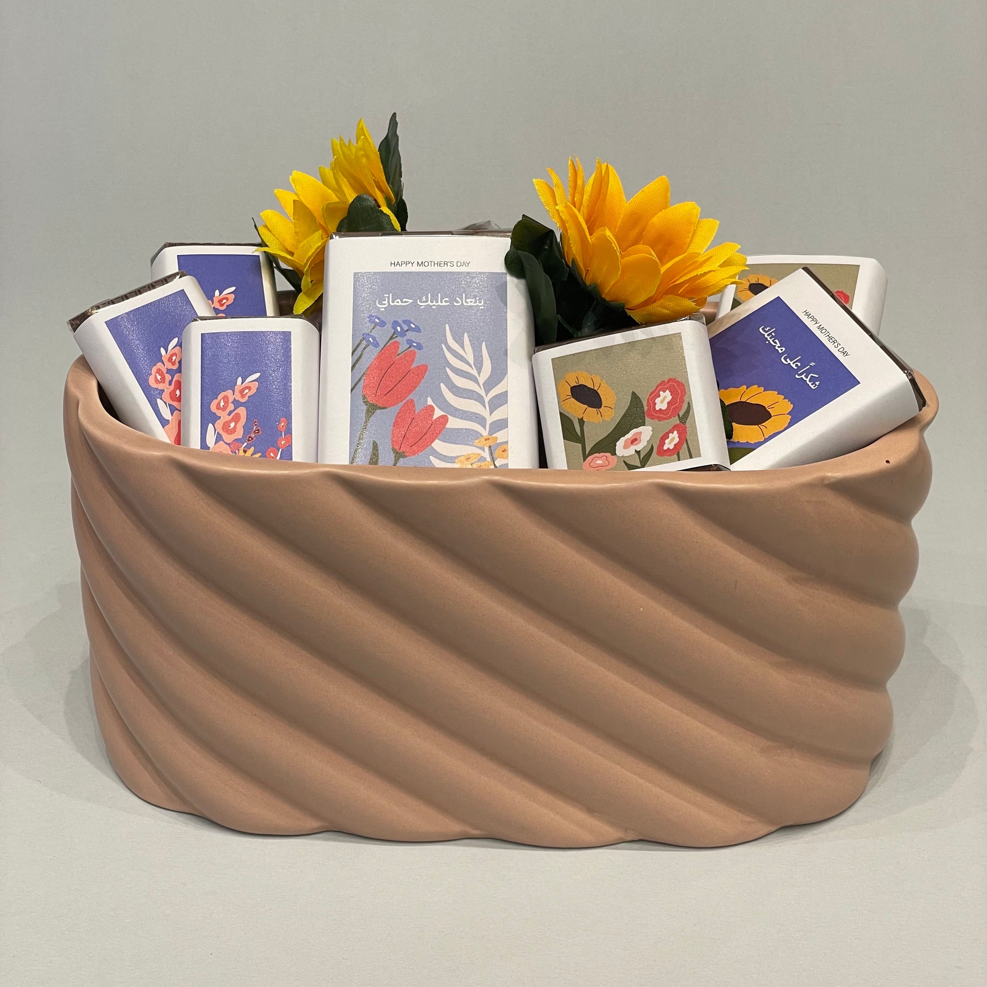 Show your mother-in-law your love and care with this elegant oval vase filled with delicious colorful chocolates and sweet messages.