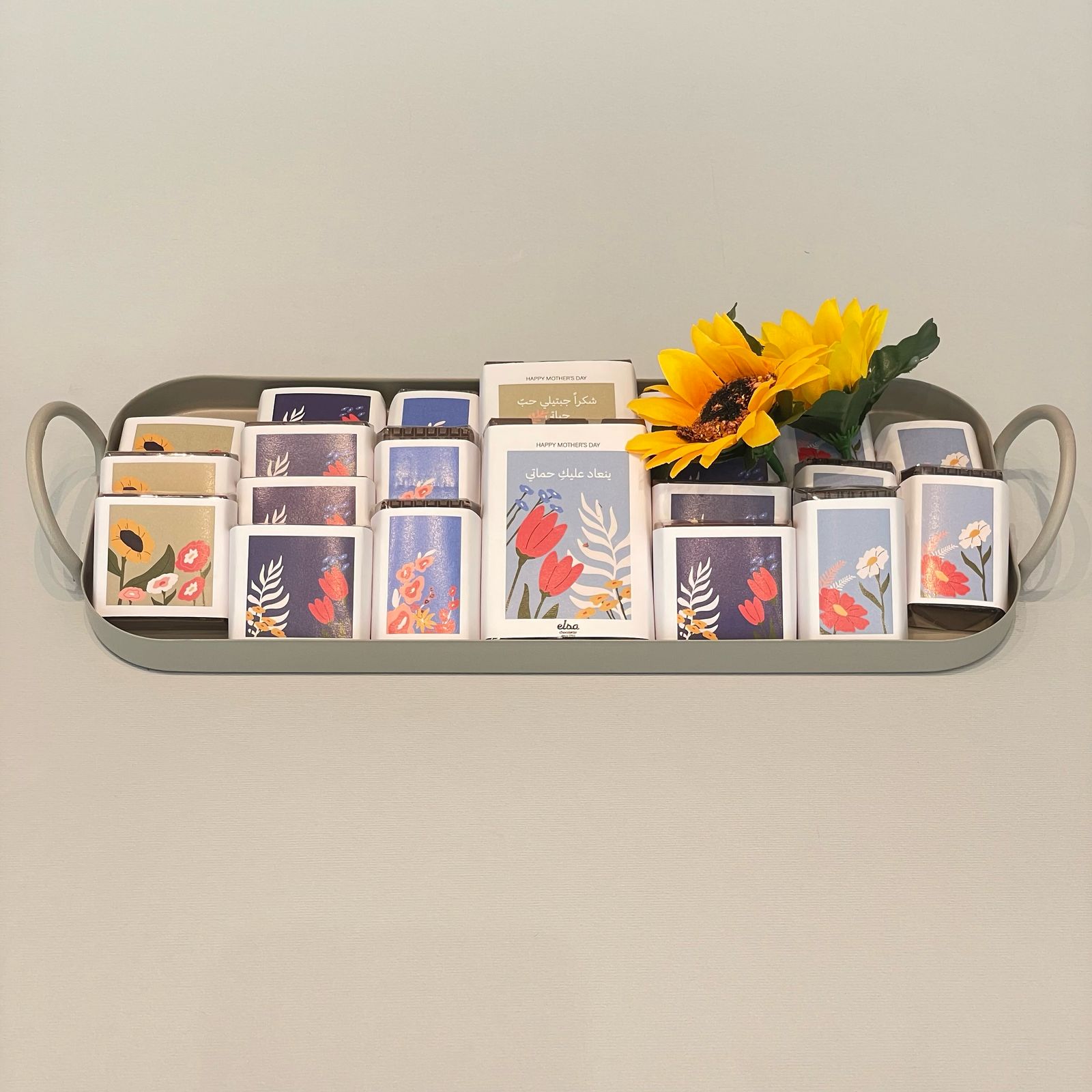 Show your love to ‘Hamete’ with this elegant metallic grey tray with handles, filled with the most heartfelt messages and a wide variety of delicious chocolates from our best sellers.