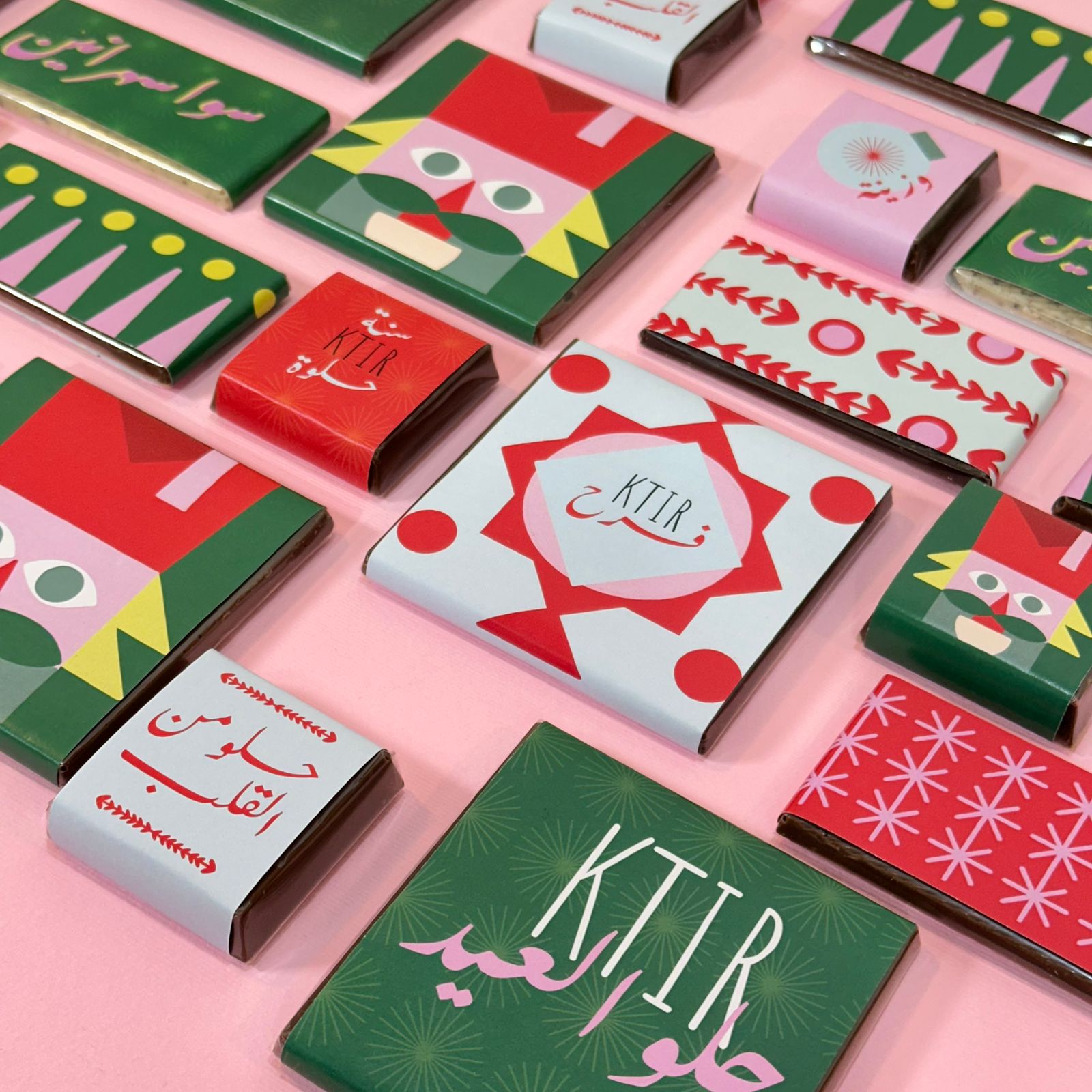 Chocolat ktir tayyib w designs ktir festive! Get your Christmas chocolates per kg. available in 500g. and 1 kg.