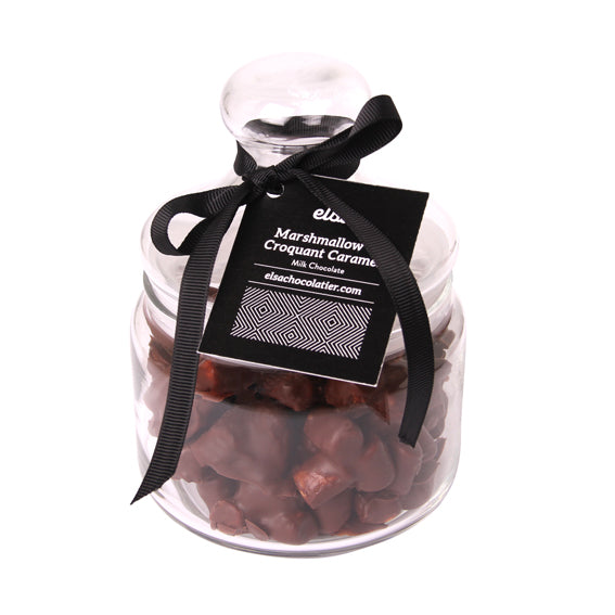 Eating this piece feels like walking on clouds! so fluffy and crunchy all at once! Marshmallow pieces mixed with croquant crumbs wrapped in milk chocolate.