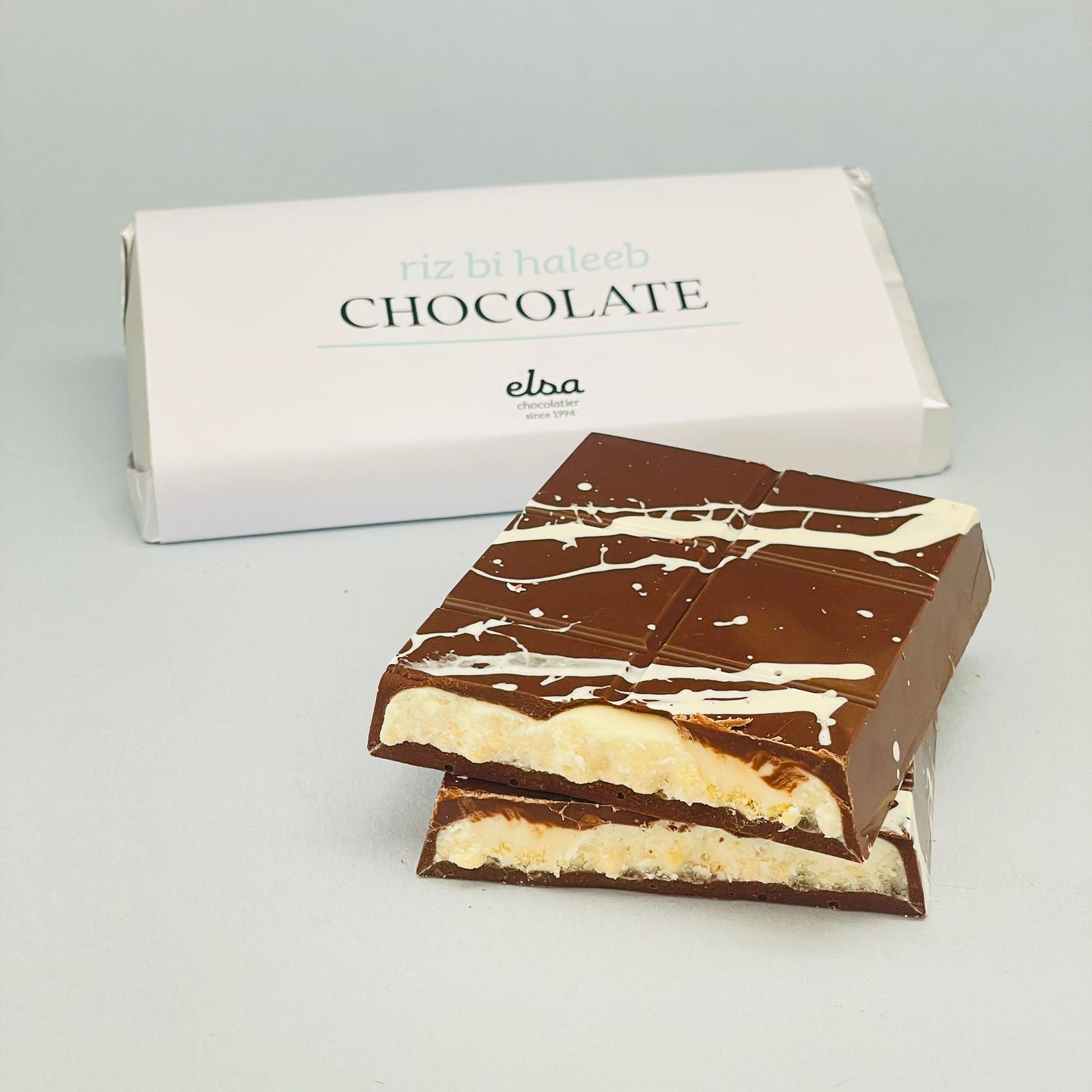 Experience the taste of Lebanese sweets with our Riz bi Haleeb chocolate bar. Made with rich Belgian chocolate and filled with traditional Riz bi haleeb filling, this bar offers a truly exquisite flavor. Indulge in the finest blend of artistry and flavors with every bite.
